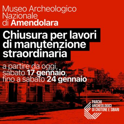 A partire da Sabato 17 gennaio 2026,il Museo Archeologico Nazionale di Amendolara resterà chiuso al [...]